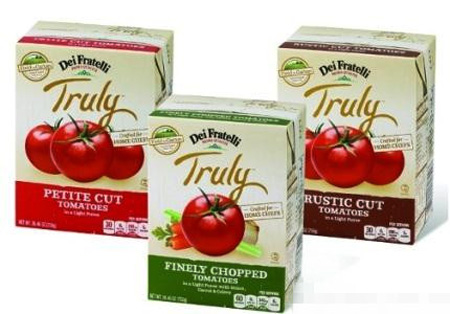 Dei Fratelli纯正番茄酱推出了三种口味:切地碎小的番茄酱;切碎的番茄与洋葱,胡萝卜和芹菜扮酱;原汁原味地西红柿酱。这些产品是为“家庭厨师”而打造的,其采用环保的纸盒包装,提供了优质的番茄制品包装。这款现代包装让Hirzel Canning公司及农场给产品提供最佳的保护,并能在不使用防腐剂或冷藏的情况下,长时间内保持高品质。这款不含BPA纸盒包装还便于存储,处理和处置。