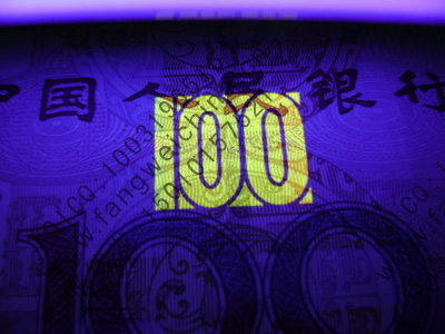 荧光油墨是常用的特种油墨之一,目前主要应用于防伪和包装印刷领域,例如钞票、银行支票等行业中。荧光油墨也称隐色油墨,是在紫外光(200nm~400nm)等光源照射下发出可见光(400nm~800nm)的特种油墨。荧光油墨的主要成分是荧光颜(染)料,它是功能性发光颜料,与一般颜料的区别在于当外来光(含紫外光)照射时,吸收一定形态的能,不转化成热能,而是激发光子,以可见光形式将吸收的能量释放出来,产生不同色相的荧光现象,这就是荧光油墨的特点和作用之一。